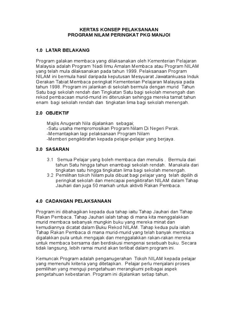 KERTAS KERJAPROGRAM PELANCARAN AKTIVITI NILAM NADI ILMU AMALAN MEMBACA LOKASI. View kertas kerja program nilam dan bulan bahasa 2021 2doc from mac 2021. Kertas Kerja Program Nilam created by hani kampun on Jan.